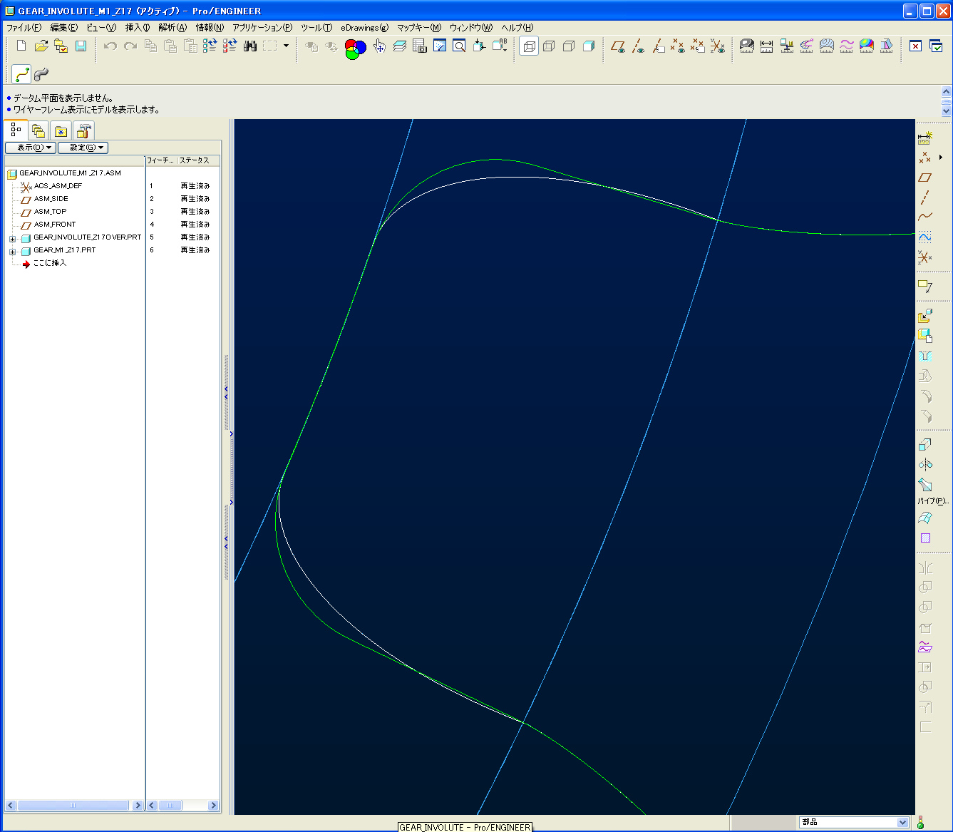 前回はインボリュート歯車の簡易モデリング手法を紹介しました。しかし、基礎円より根元側の形状が気になっておりました。簡易的に2D形状を出してくれるフリーソフトの歯形も、前回紹介した物と大差無い物でした。今回はPro/E上でラックによる歯形創成を再現し、形状を比較したいと思います。